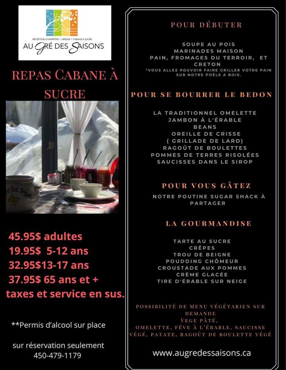 Au gré des saisons cabane à sucre réception salle de mariage